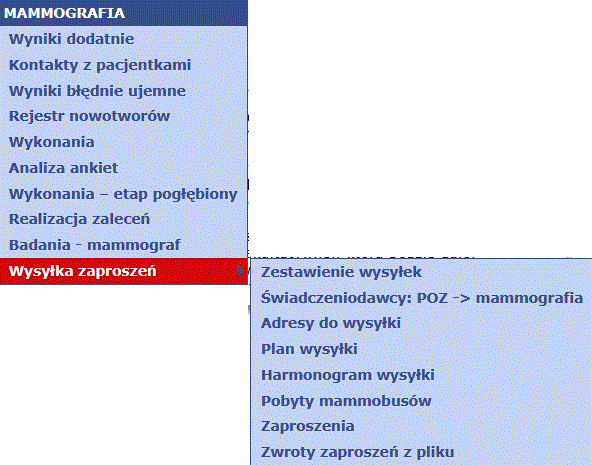Menu 'Mammografia'